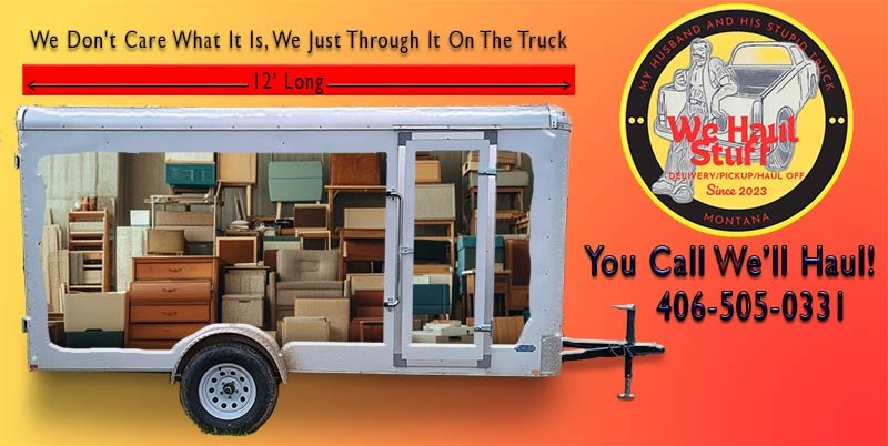 My Husband and His Stupid Truck is your go-to hauling crew when the clutter’s out of hand and you’ve got better things to do with your weekend. Based in Montana and built for country life, we specialize in full-house cleanouts, garage and shed hauls, yard debris, and construction junk—the kinds of things that pile up faster than a snowdrift in February. Got a busted hot tub, an old fridge, or a couch that’s uglier than your ex’s temper? No problem. “We don’t care what it is — we just throw it on the truck.”